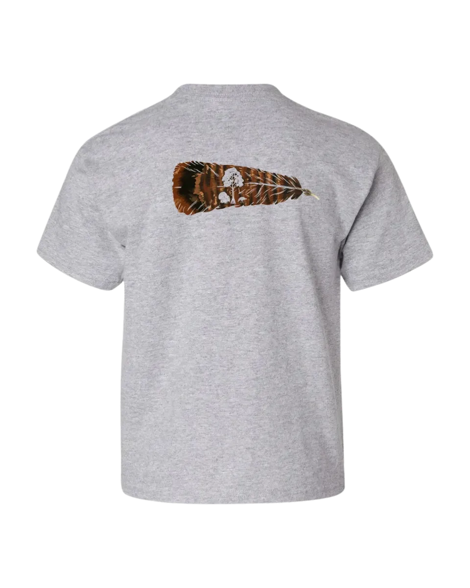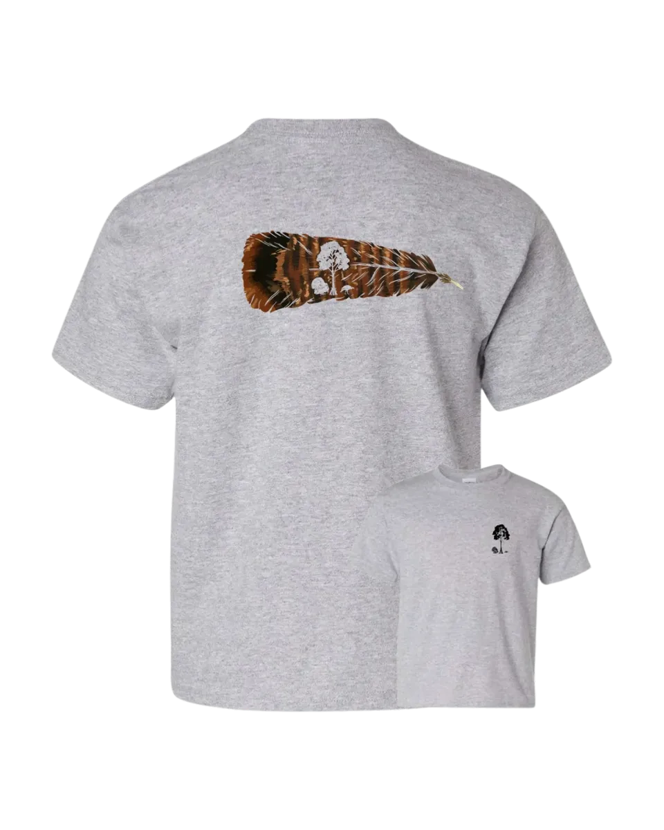 The Grey Feather Youth Tee features a durable Gildan Heavy Cotton base, ensuring long-lasting wear for active youth. The Sport Grey color combines 90% cotton and 10% polyester, offering a soft feel with added durability and moisture resistance. Designed for comfort and resilience, this tee is ideal for everyday use and playful adventures.