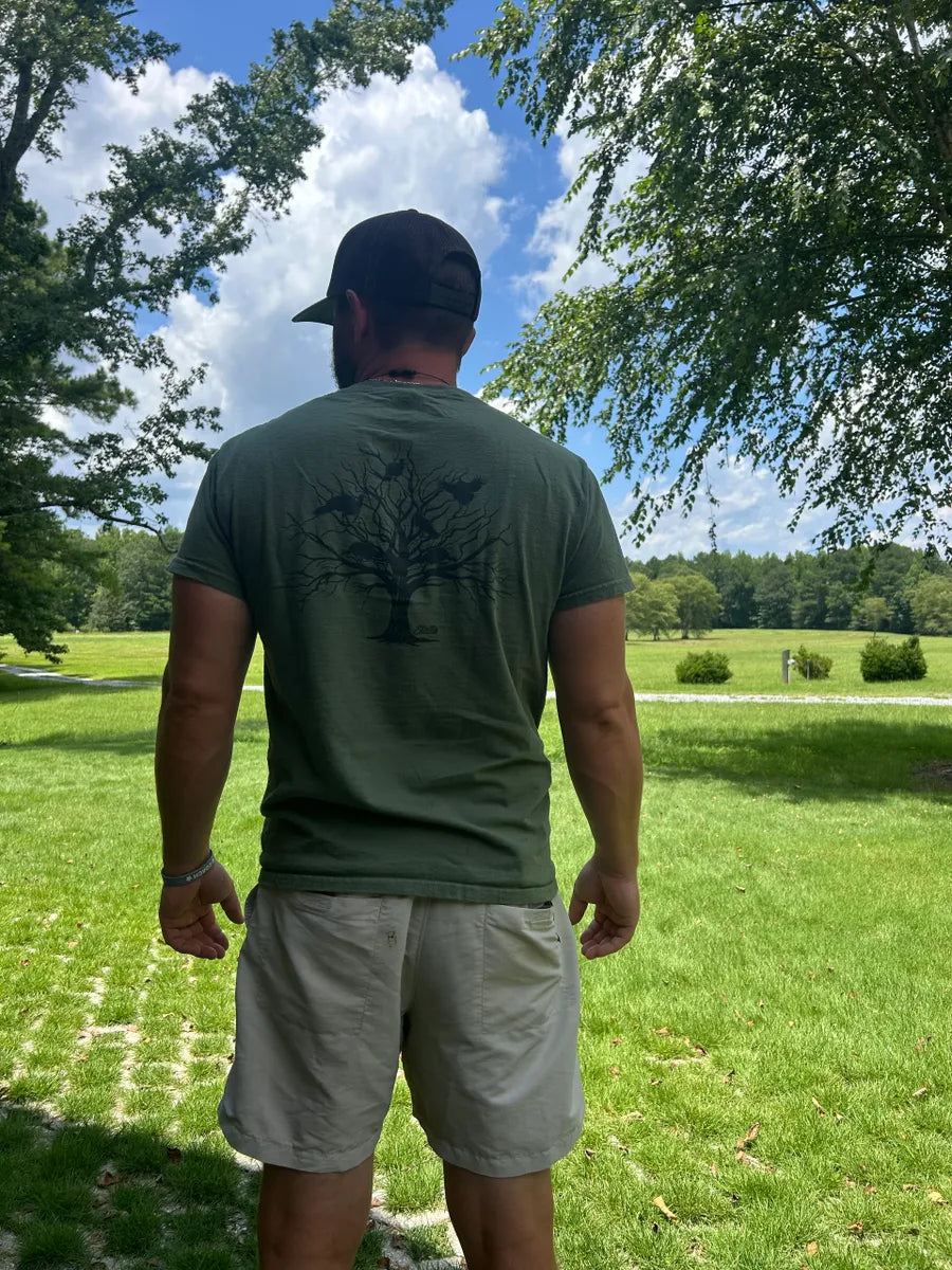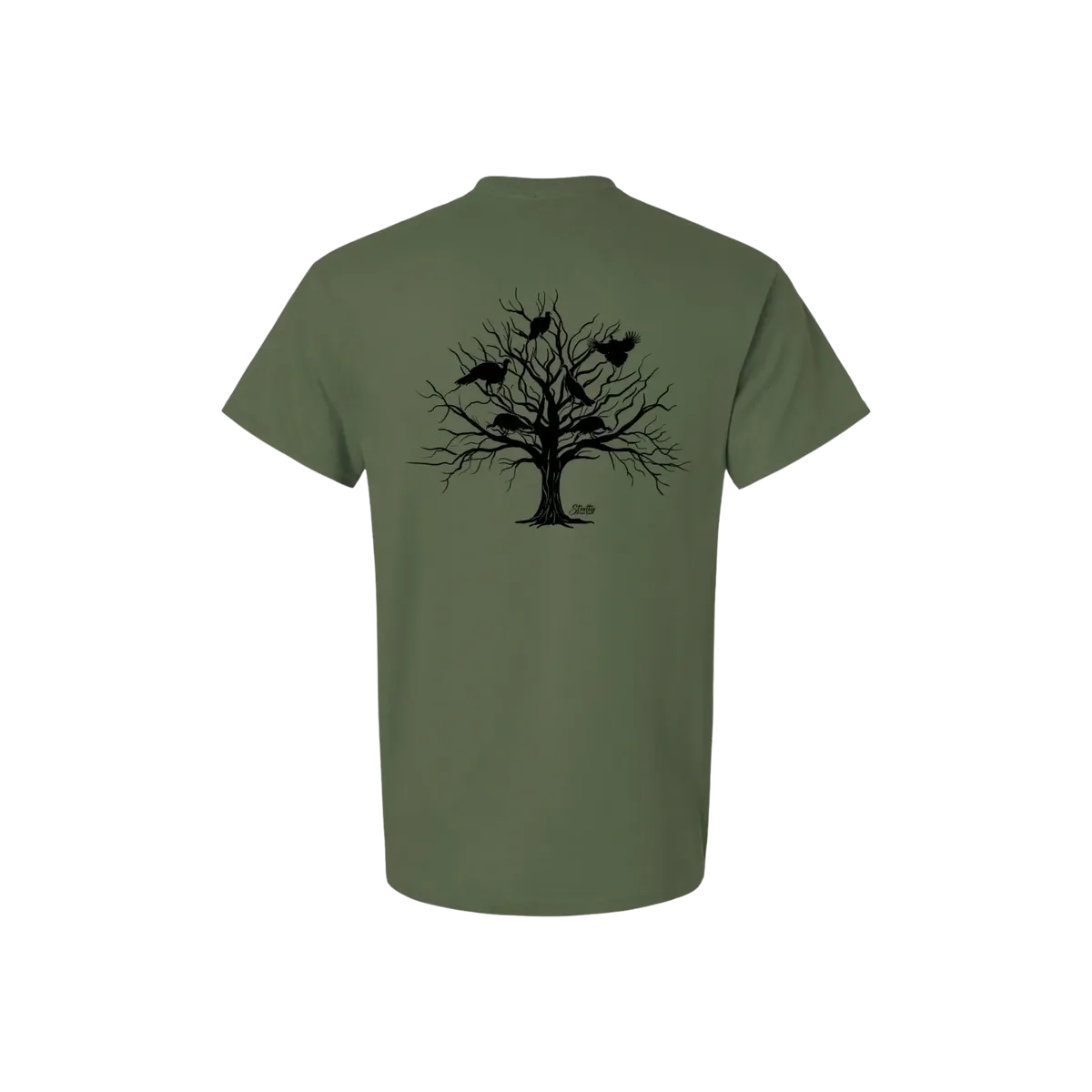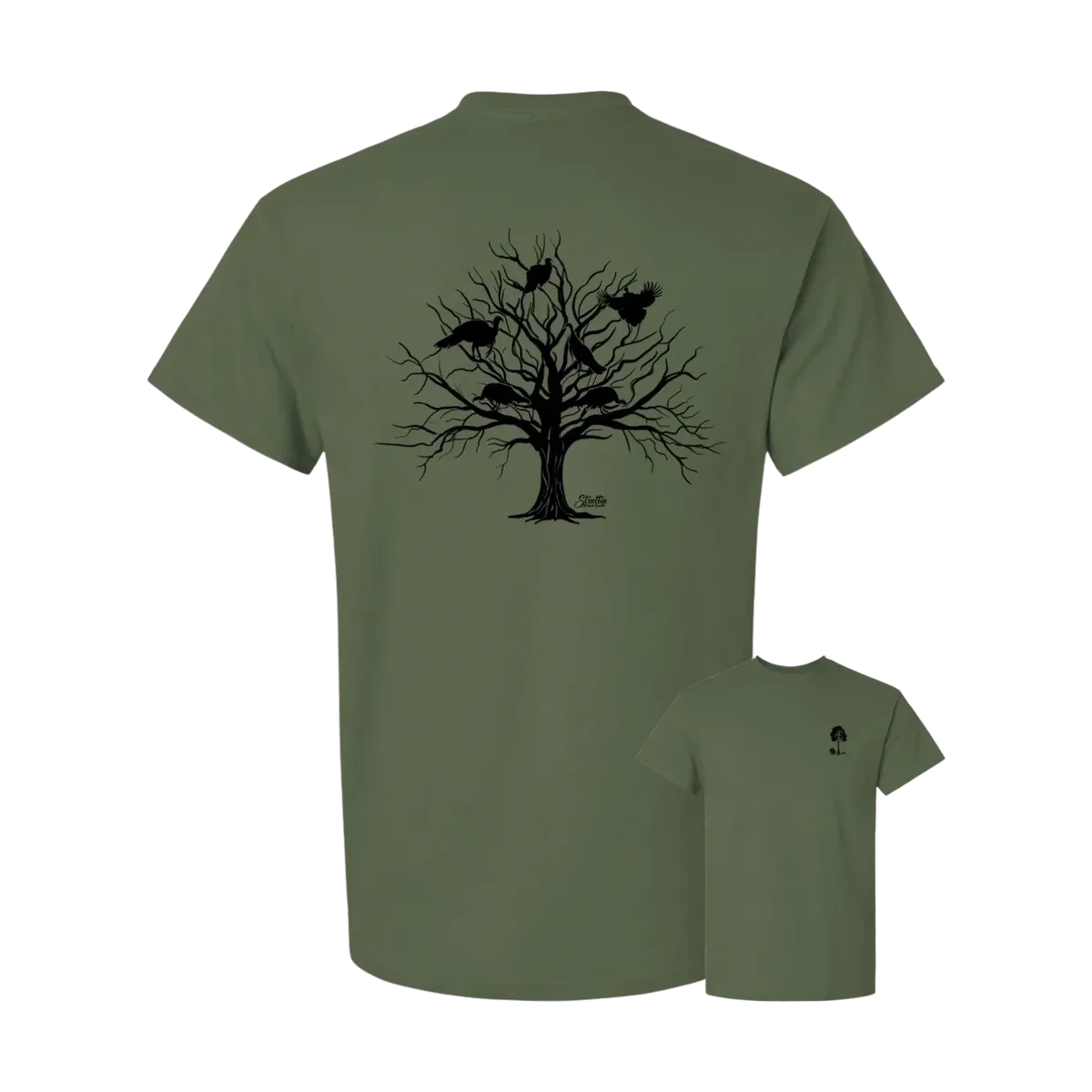Crafted from 100% cotton, the Roosted Turkeys Tee in Military Green offers durable comfort and breathability. Its military green color provides a versatile, rugged look suitable for outdoor activities or casual wear. Ideal for those seeking both style and practical fabric quality in everyday apparel.